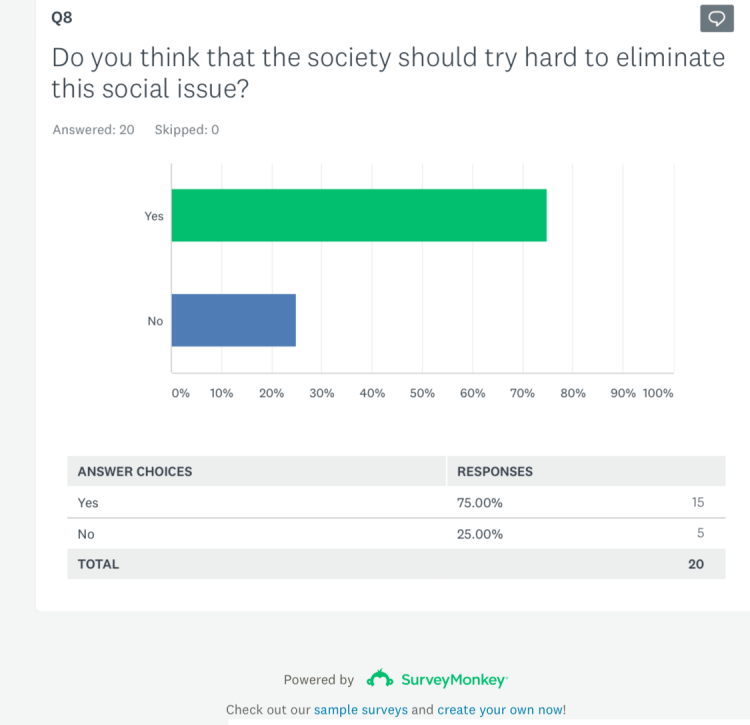 So to get opinions and perspectives of the people regarding my particular topic, So I made a survey and asked some questions regarding the topic. The survey consisted 8 question. This survey gave a clear view of the society on this particular (social issue).